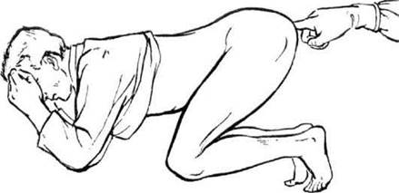 Рис. 4.7. Пальпация предстательной железы через прямую кишку в коленно-локтевом положении больного