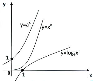 Вывод: логарифмическая функция возрастает медленнее, чем степенная, а степенная медленнее, чем показательная.