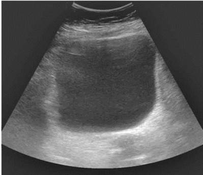 При УЗИ стенка мочевого пузыря имеет трехслойное строение. Средний гипоэхогенный слой представлен срединным слоем детрузора, внутренний гиперэхогенный слой является единым изображением внутреннего слоя детрузора и уротелиальной выстилки, наружный гиперэхогенный слой - изображением наружного слоя детрузора и адвентиции.