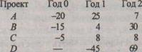 Таким образом, инвестиционный портфель года 1 должен включить проекты В и С в полном объеме, а также часть проекта D; оставшуюся часть проекта D и проект А следует включить в портфель года 2:
