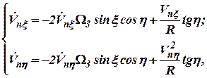 - поправки, учитывающие переносное и кориолисовое ускорения, определяемые в БЦВМ согласно выражения: