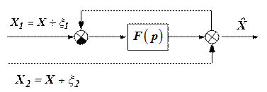 Предположим, один и тот же навигационный параметр измеряется двумя или несколькими измерителями, выполненными на различных физических принципах. Тогда алгоритм компенсации, позволяющий снизить погрешность измерения данного навигационного параметра, может быть реализован согласно схеме: