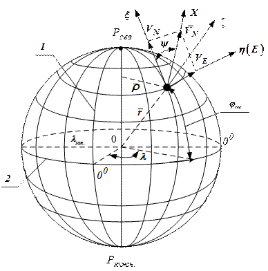 Предположим, что с помощью гиростабилизированной платформы (ГСП) смоделирована на борту объекта географическая система координат