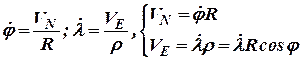 Уточним схему ИНС применительно к навигации объекта вблизи поверхности сферической Земли. Географическая система координат