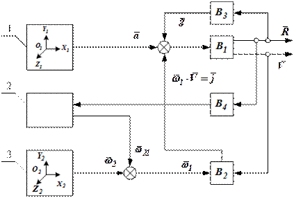 Принцип построения данной ИНС основан на использовании акселерометров и датчиков угловой ориентации. Блок акселерометров 1 измеряет вектор ускорения