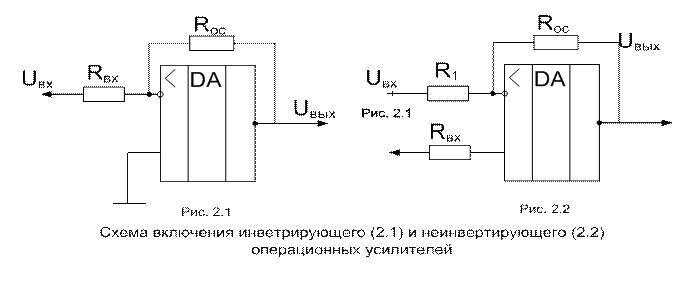 Рис. 2 Основные методы включения DУ инвертирующие (1) и неинвертирующей (2)