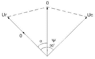 Из векторной диаграммы очевидно, что угол α , на который отстает вектор Uc от вектора U равен: