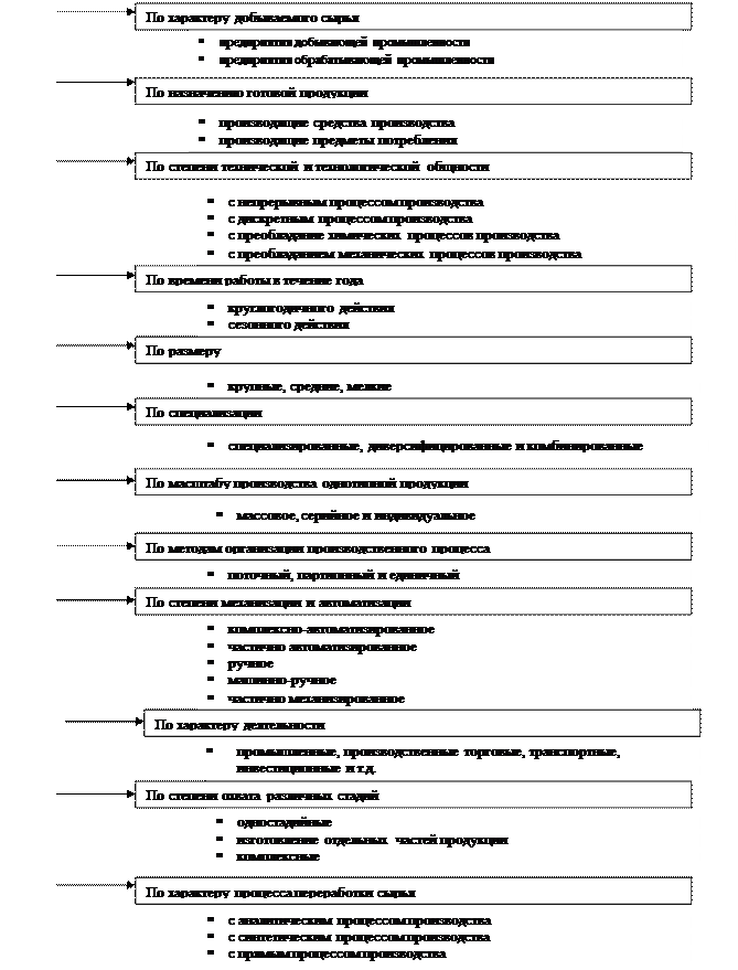 Предприятия могут классифицироваться по ряду признаков (рис. 2). Классификация предприятий имеет важное значение при разработке для однородных предприятий типовой документации, применении типовых конструктивных и технологических решений, производственной структуры и других целей.