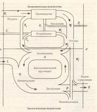 Рис. 10.4. Схема основных материальных потоков в эколого-экономической системе