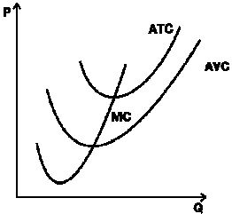Обозначения на рисунке: P – стоимость (затраты); Q – объем производства; АVС – средние переменные издержки; АТС – средние валовые издержки; МС –Предельные издержки.
