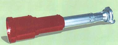 Ручные стволы типа РС-50 и РС-70 без перекрывных устройств (рисунок 17) служат для создания только сплошных водяных струй, различаются геометрическими размерами и диаметрами насадок. Ствол состоит из конусообразного корпуса, внутри которого установлен успокоитель, насадки, соединительной головки и переносного ремня. В стволах РС-50 диаметр насадки 13 мм, в РС-70 - 19 мм.