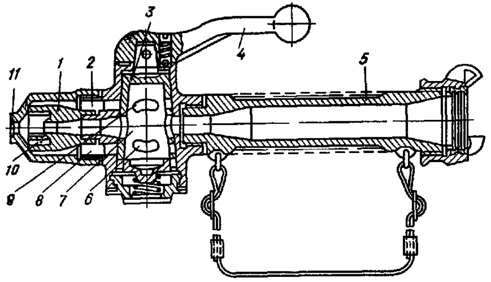 2 – вентиль, 3 – маховичок, 4 – валик,