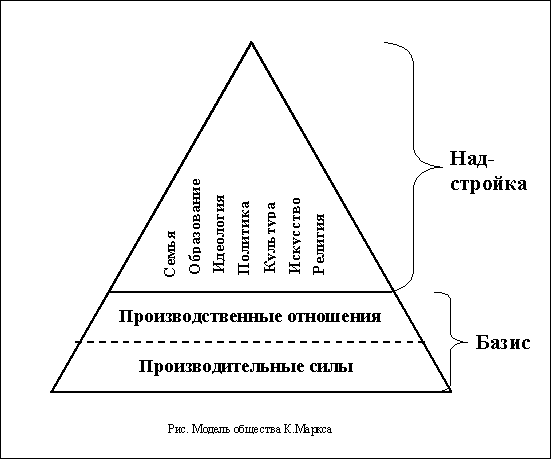 3. Одна из самых полных и концептуально четких моделей общества была создана в середине Х1Х века великим немецким мыслителем Карлом Марксом. Согласно его воззрениям, любое общество состоит из базисаи надстройки.