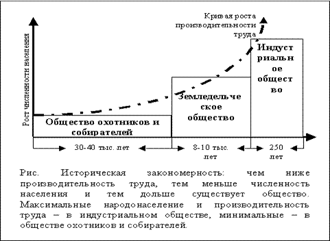 Так, капитализм короче феодализма, а тот, в свою очередь, короче рабовладения. Доиндустриальное общество протяженнее индустриального. Каждая последующая общественная формация короче предыдущей в 3-4 раза. Самым продолжительным был первобытный строй, просуществовавший несколько сот тысяч лет. Археологи, изучающие историю общества по раскопкам памятников материальной культуры, вывели ту же самую закономерность. Каждую фазу в эволюции человечества они называют исторической эпохой.