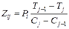 Значения Zij-упорядочены по убыванию, это обеспечивает первоочередную выборку блоков с максимальным приращением среднего времени обращения на единицу затрат с учетом активности. Передача, связанная с приоритетом Zij представляет собой перенос программ характеризующихся активностью Pi из ЗУ j-1 в ЗУ типа j. При этом необходимо исключить Wi блоков из ЗУ (j-1) типа и увеличить на ту же величину объем ЗУ j-ого типа, что приводит к увеличению затрат на величину: