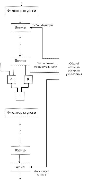 Источники управления могут быть различными: от отдельного регистра до выхода блока микропрограммного управления. Основная особенность, однако, в том, что в любую единицу времени эти сигналы управляют состоянием машины в целом.