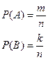 Доказательство: пусть n-общее число возможных элементарных исходов опыта, m-число исходов, благоприятствующих событию A, k-число исходов, благоприятствующих событию B. Изобразим наглядно схему случая.