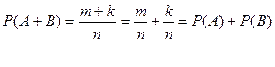 Поэтому число исходов , благоприятствующие событию A+B=m+k.