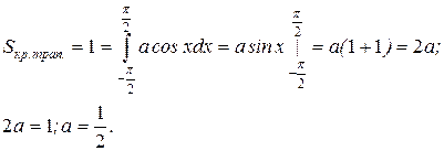 Найти вероятность попадания величины на участок от 0 до p/4. Найти значение коэффициента a и построить кривую распределения.