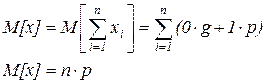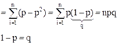 Из независимости испытания следует независимость xi. Дисперсия от суммы равна сумме дисперсий.