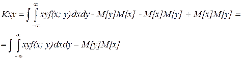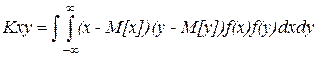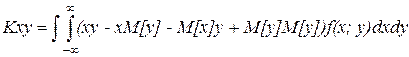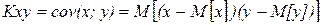 Две случайные величины х и у находятся в корреляционной зависимости, если изменение одной из величин влечет за собой изменение закона распределения другой. Для характеристики зависимости между случайными величинами вводят понятие корреляционного момента или ковариации. Корреляционным моментом случайной величины х и у называется математическое ожидание произведения отклонений этих величин от их математических ожиданий