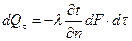 Согласно гипотезе Фурье количество теплоты dQ Дж, проходящее через элемент изотермической поверхности dF за промежуток времени dτ , пропорционально температурному градиенту