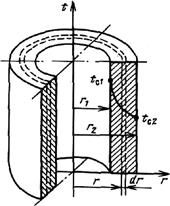 Интегрирование уравнения [94]в определенных пределах (по tот tc1до tc2и по r от r1до г2) дает зависимость для расчета теплового потока через цилиндрическую стенку: