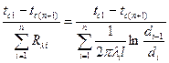 Отличие формулы [98]от [90] заключается только в способе расчета термических сопротивлений отдельных слоев для плоской и цилиндрической стенок. Но и это различие существенно только при больших отношениях наружного и внутреннего диаметров каждого слоя dн/dвн = di+1/di > 1,5. При меньших отношениях dн/dвн термические сопротивления отдельных слоев, как уже было показано, целесообразнее считать по упрощенной формуле
