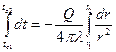 Разделив переменные и проинтегрировав по ( в пределах от tc1 и tc2 по rв пределах от r1 до r2: