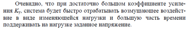 Видно, что для пропорционального закона управления присутствует отклонение напряжения на нагрузке от заданного напряжения.