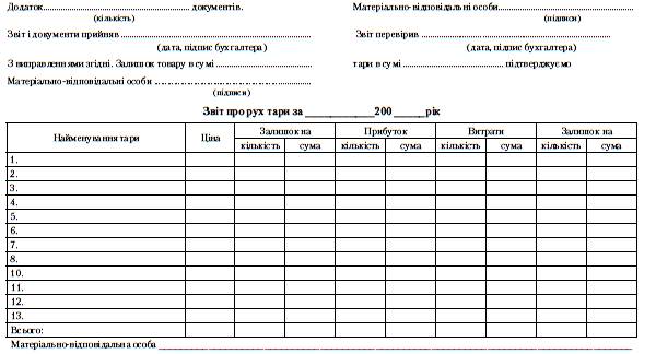 • III розділ - Звіт про рух тари та інших матеріальних цінностей-,