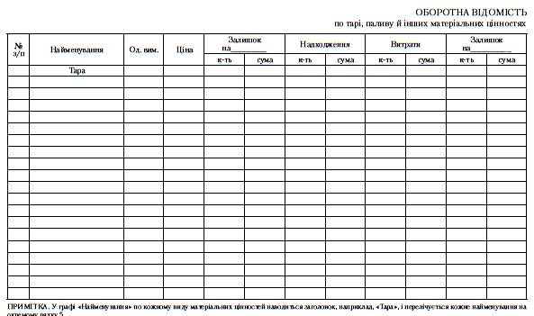 Записи у місячному звіті робляться на підставі первинних документів, а розрахунок залишків на кінець місяця базується на формулі товарного балансу: