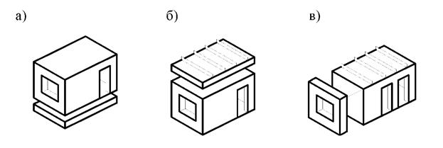 Рис. 3.22 - Види об'ємних блоків: «перевернутий стакан» або «ковпак», б - «стакан», в - «лежачий стакан»