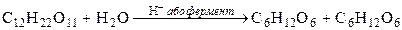 Інверсія або гідроліз сахарози. Гідролізуючись під дією ферментів або в кислому середовищі, сахароза перетворюється на суміш рівної кількості глюкози і фруктози: