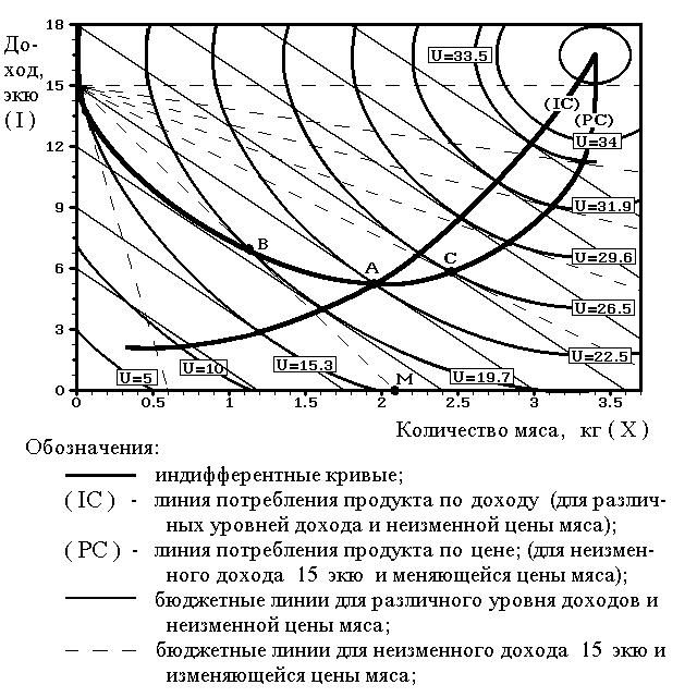 Рис. 2. 4. Линии потребления по доходу и по цене