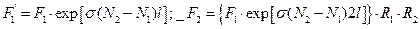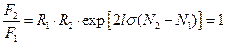 Интенсивность потока излучения после единого цикла прохождения через активную среду (активная среда длинной L , отражение от 32 с коэффициентом отражения R2, активная среда длиной L, отражение от 31 с коэффициентом R1 (вернулись в исходную точку)), определяется следующим образом.
