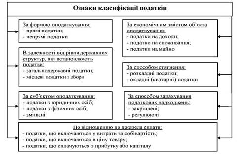Об'єднання податків у систему передбачає можливість їх класифікації, що дозволяє краще з'ясувати сутність цієї категорії. Класифікація податків дає можливість більш повно висвітлити сутність та функції податків, показати їх роль у податковій політиці держави, напрям і характер впливу на соціально-економічну сферу. Детальна класифікація податків наведена на рис. 8.