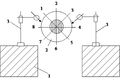Алгебраическая полуразность между показаниями первого индикатора составляет величину торцевого боя. Наибольшая величина и будет составлять окончательную величину торцевого боя. Аналогичным образом проводится определение биения дисков. Индикаторы устанавливаются на цилиндрах и корпусах подшипниках.