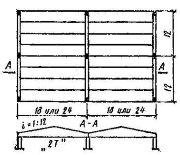 Рис.3. Схема покрытия с двускатными плитами типа 2Т размером 3х18 м