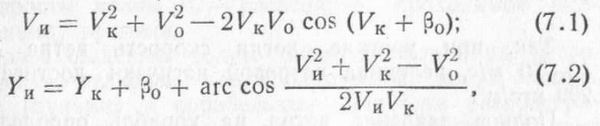 На движущийся корабль действует относительный (кажущийся) ветер, который связан с истинным следующими отношениями (рис. 7.1)(2):