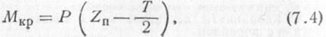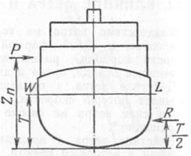 Величина кренящего момента Мкр (рис. 7.2) в кгс • м для случая установившегося движения и действия силы давления ветра Р, перпендикулярной ДП корабля, определяется из выражения