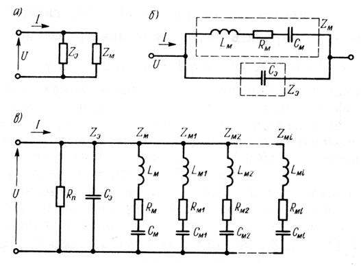 Схемы замещения пьезокерамических элементов (резонаторов).