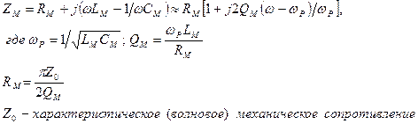 Сопротивление ZM зависит от типа ПЭ, направления его поляризации и т.д.; для приближенных расчетов сопротивление ZM часто представляют в области резонансной частоты ПЭ в виде последовательного резонансного контура (рисунок 3.б):