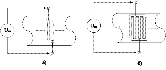 | Рисунок 6 - Простой а) и многоэлектродный б) встречно-штыревые преобразователи. |