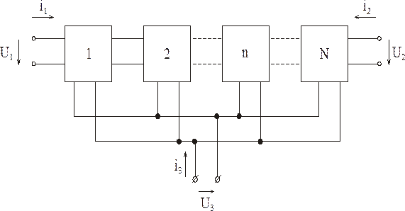 Эквивалентную электрическую схему преобразователя, состоящего из N пар электродов, можно получить из N эквивалентных электрических схем отдельных секций, соединяя их акустические входы последовательно, а электрические параллельно. Эта эквивалентная схема описывается матрицей Y-параметров: