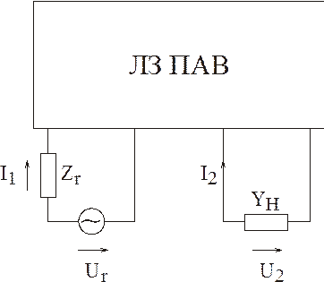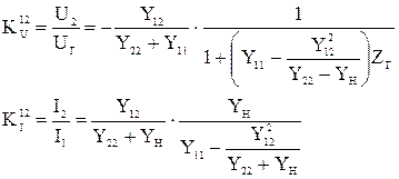 Так, для схемы включения генератора и нагрузки изображенной на рисунке 14, коэффициенты передачи по напряжению и току с первого входа ЛЗ на ее второй вход имеют вид: