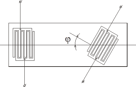 На рис. 15 показана ЛЗ ПАВ, у которой один из преобразователей повернут относительно другого на некоторый угол