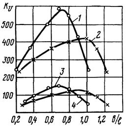 Зависимость коэффициента трансформации Ки для высоковольтного ПТ поперечно-продольного типа от его размеров b/l приведена на следующем рисунке: