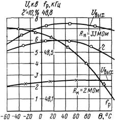 В диапазоне температур —60...+120° С изменения tgδ приводят к снижению КПД и выходной мощности Рвых не более чем на 3 ... 5%.