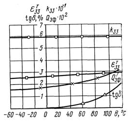 Значительно (примерно в 1,5 раза) возрастает диэлектрическая проницаемость εтзз, увеличиваются и диэлектрические потери: tgδ (от 0,2% до 2%, т. е. в 10 раз).